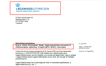 2024年第18张国际批件,改良新药伏立康唑注射液获丹麦上市许可!mg电玩娱乐在线网址伏立康唑注射剂型已获批国家市场份额超全球65%