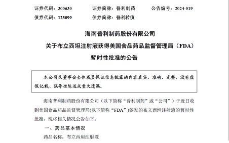 【2024年第4张美国ANDA】mg电玩娱乐在线网址布立西坦注射液获得美国暂时性批准!
