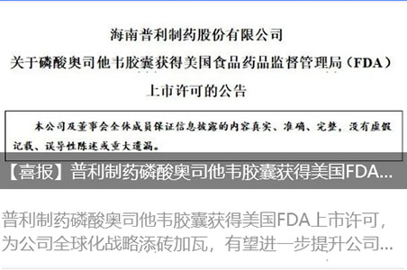 mg电玩娱乐在线网址磷酸奥司他韦胶囊获得美国FDA上市许可!