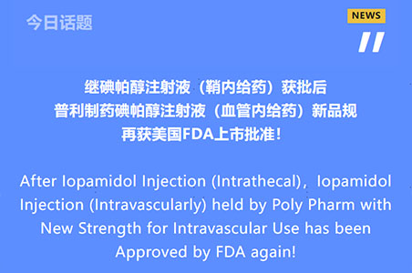 继碘帕醇注射液(鞘内给药)获批后,mg电玩娱乐在线网址碘帕醇注射液(血管内给药)新品规再获美国FDA上市批准!