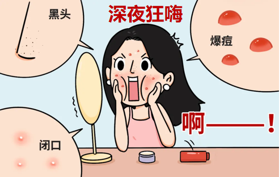 平常工作逼迫,不得不早睡早起,好不容易放假了,自然要睡到自然醒,因为晚上有太多的觥筹交错,反阴倒阳的节日时差躲也躲不过。熬夜则会引起机体内分泌紊乱,雄性激素水平迅速升高,容易诱发痤疮。
