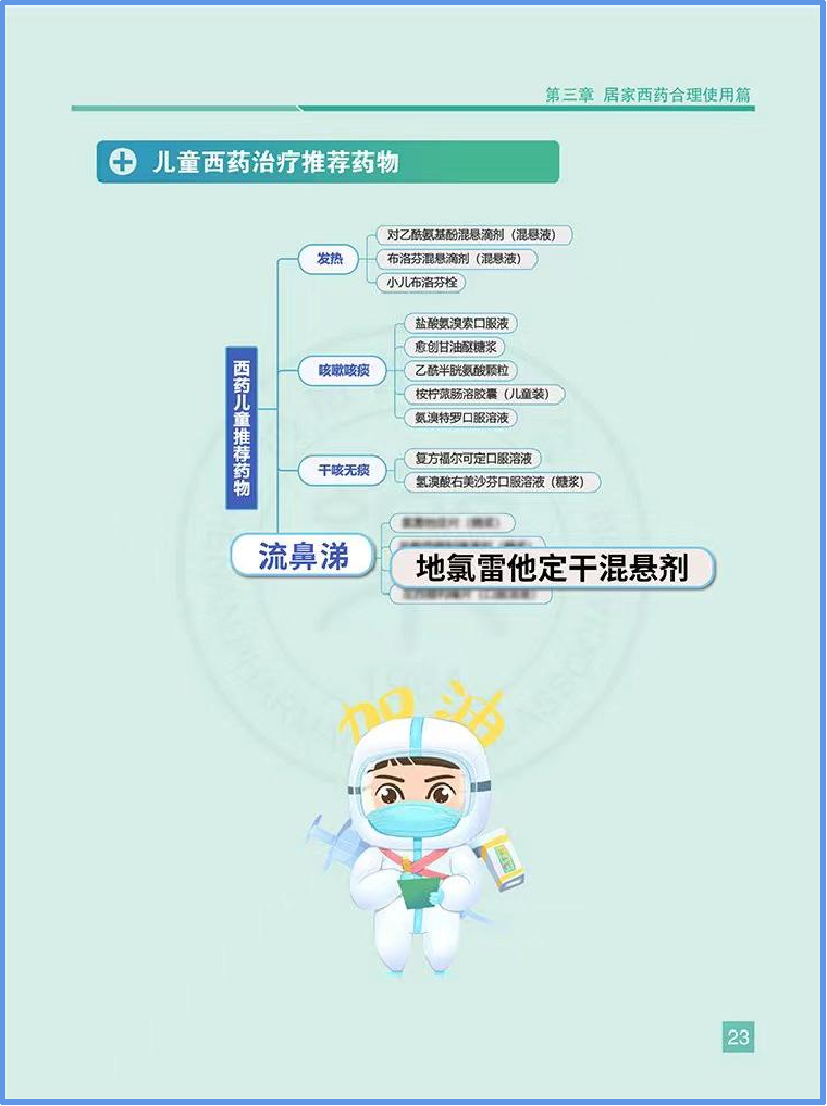 本次目录在儿童西药治疗推荐药物模块,推荐芙必叮-地氯雷他定干混悬剂,用于6个月及以上儿童“流鼻涕”症状。