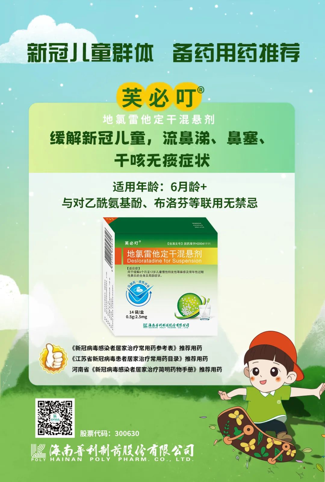 近日,芙必叮-地氯雷他定干混悬剂入选河南省药学会《新冠病毒感染者居家治疗简明药物手册》。是海南mg电玩娱乐在线网址股份有限公司的独家品种,剂型单列