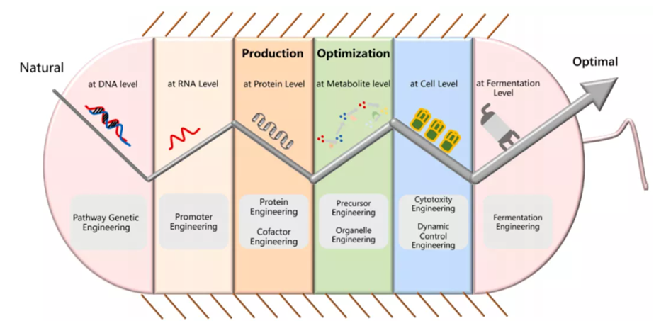 在国家战略性技术开发领域,mg电玩娱乐在线网址积极建设以合成生物学为核心的研发平台,一方面以工业微生物为底盘细胞,推进以酶工程技术平台为依托的生物催化项目和以基因工程技术平台为依托的代谢改造项目的产业化开发,目前已有数个在研项目具备了产业化放大条件,并积极开拓其他高附加值产品的生物制造。